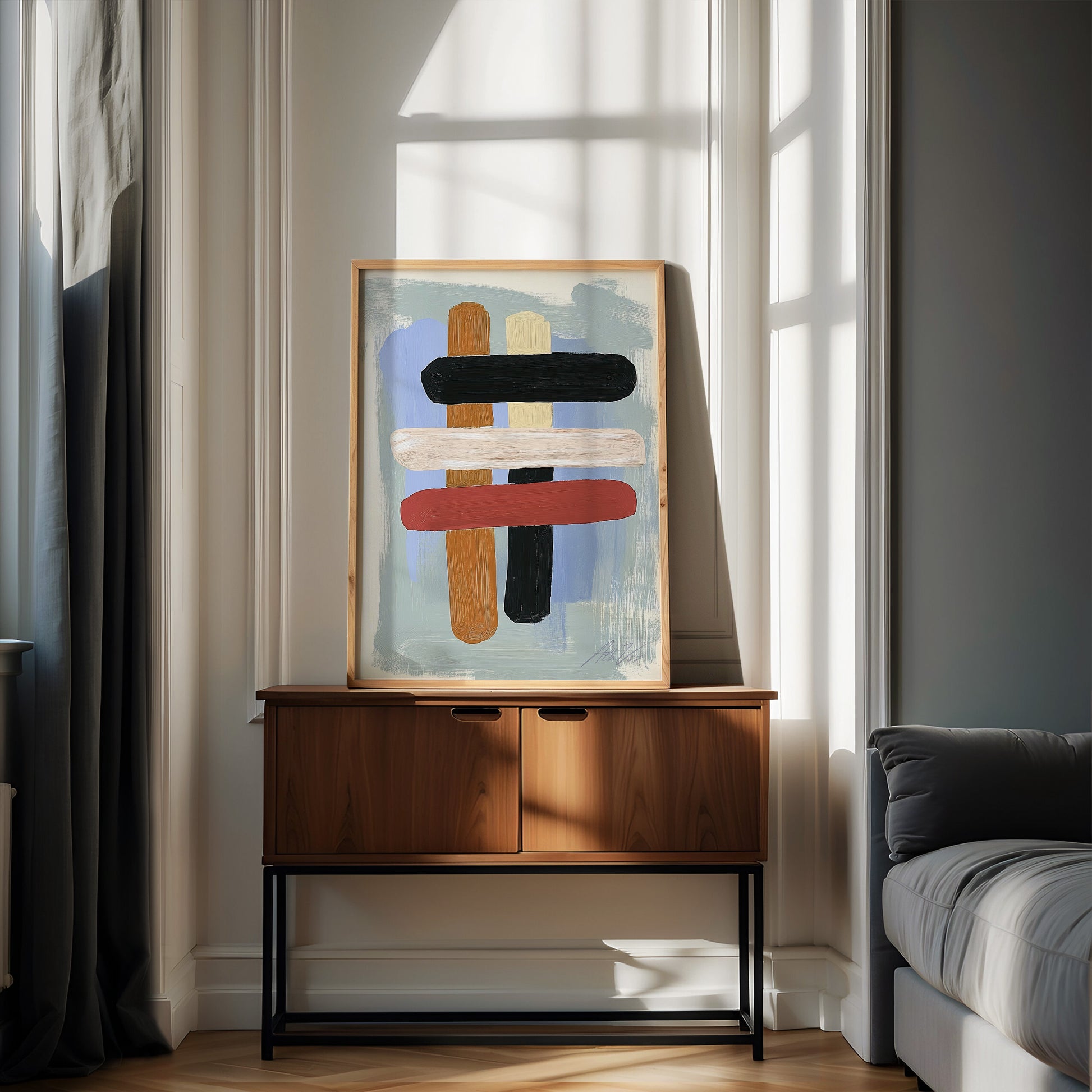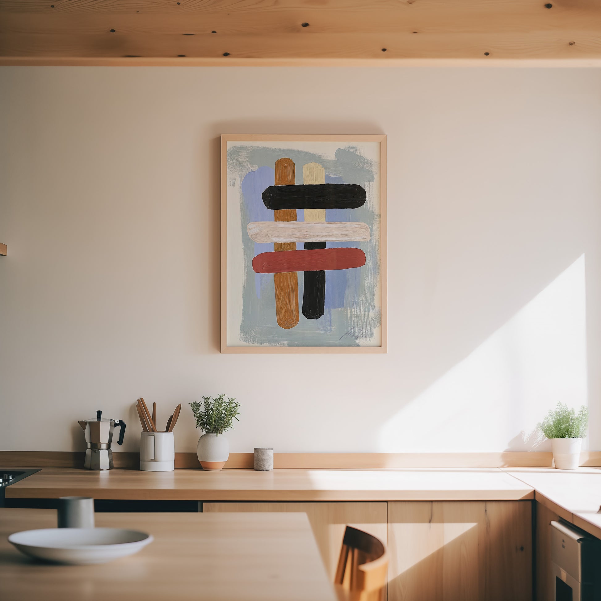 The visible brushwork and thick paint textures add warmth and depth, making this piece ideal for interiors that blend mid-century modern, boho, or Nordic design aesthetics.