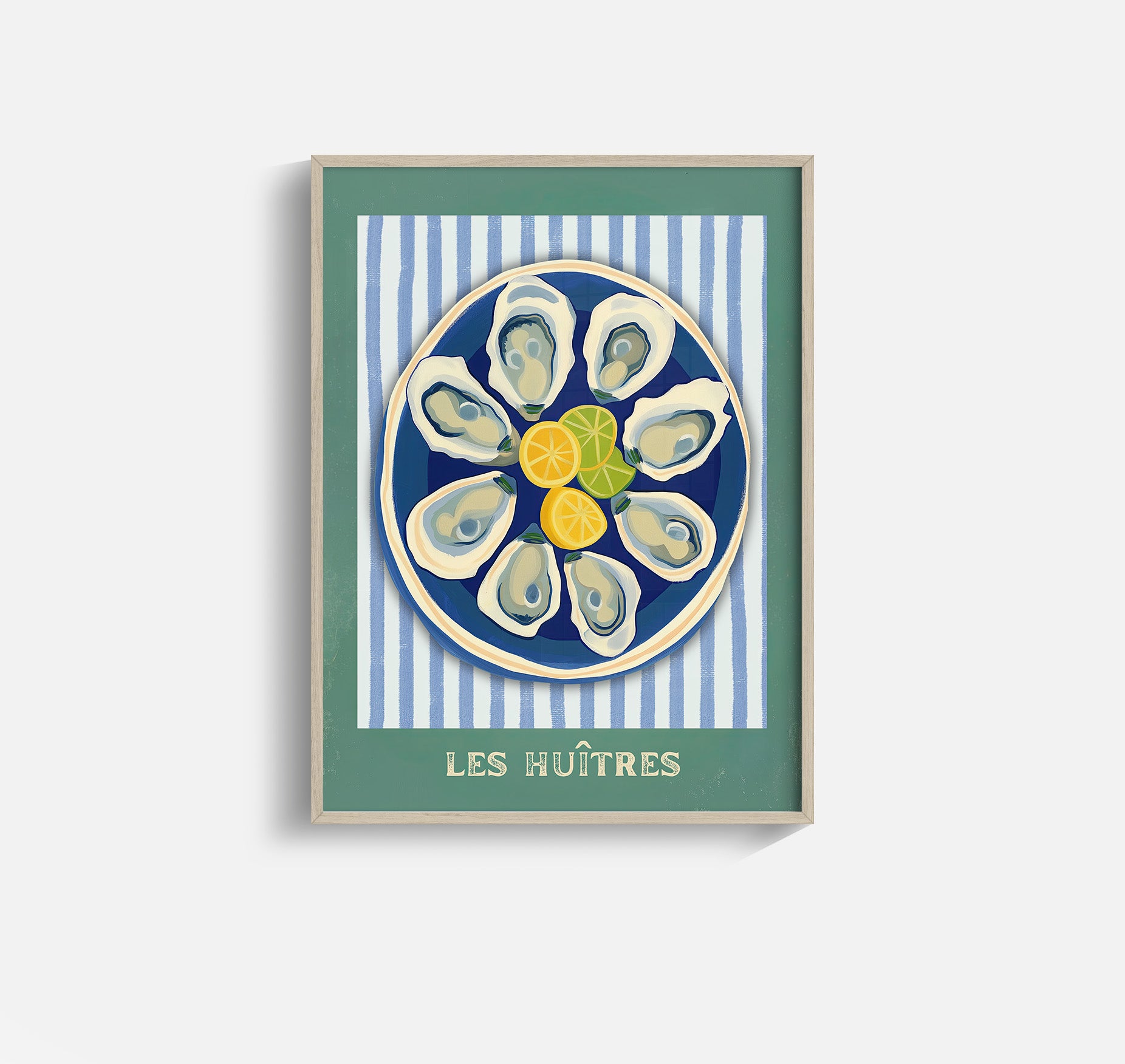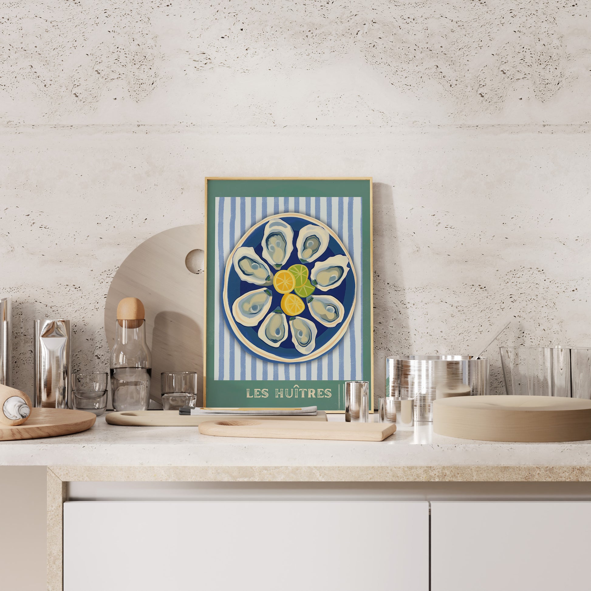 Les Huîtres – French Coastal Oyster Wall Art with Lemon & Lime